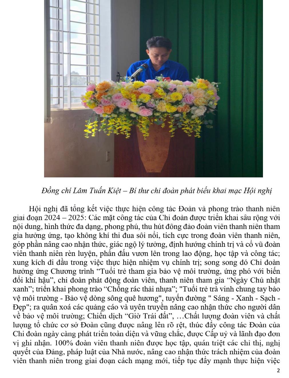 Hội nghị Chi đoàn Công ty cổ phần Công trình đô thị Trà Vinh nhiệm kỳ 2025-2027